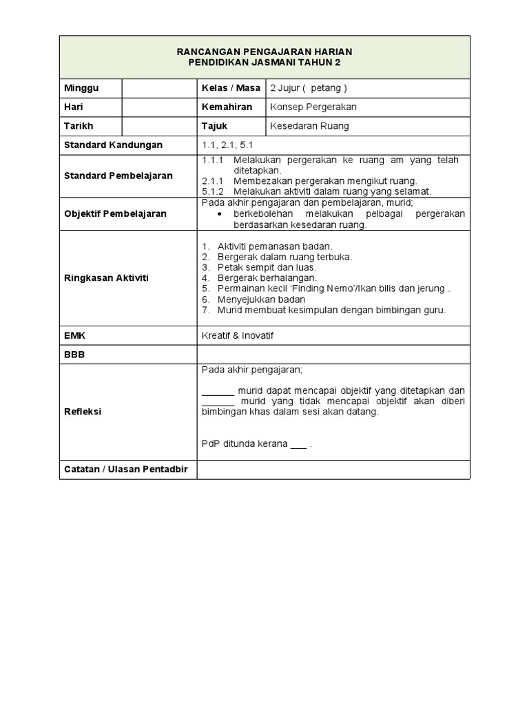 Rph Tahun 2 Kssr Rancangan Mengajar Tahun 2 Pendidikan Kesihatan 1