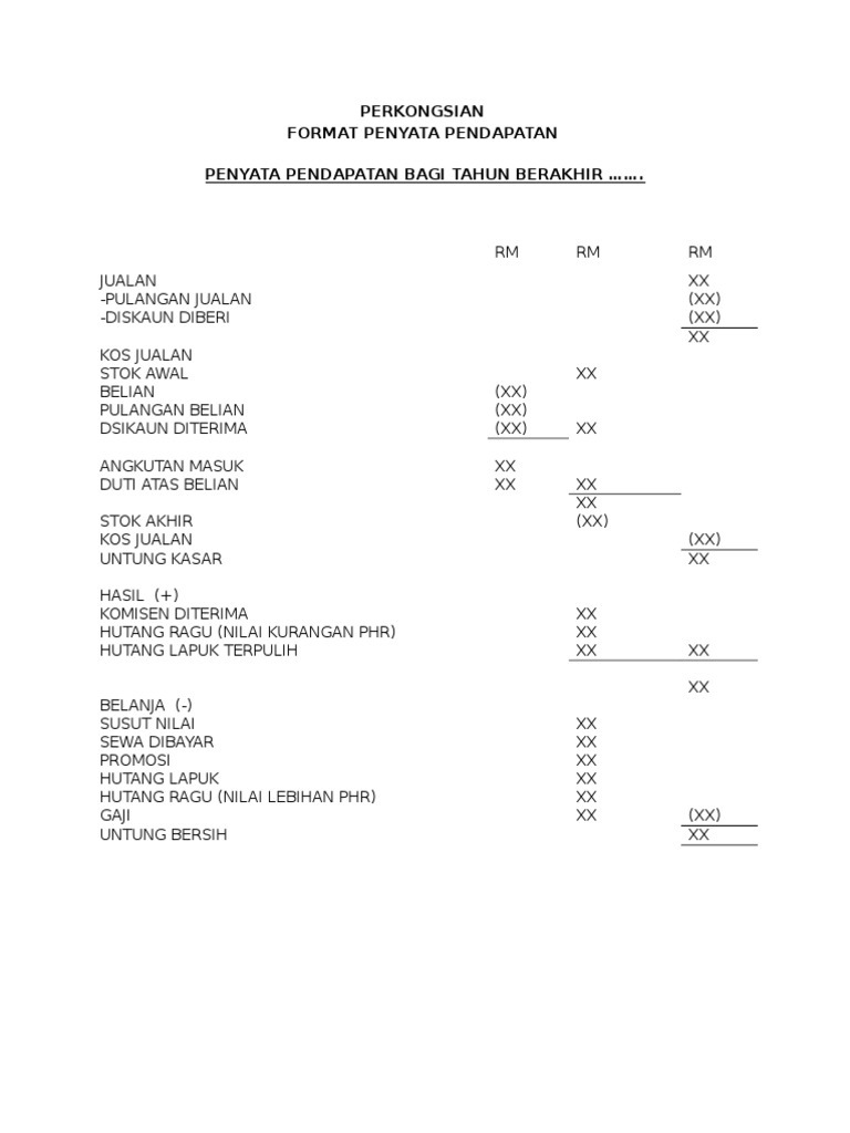 Perkongsian Format Akaun Pengasingan Untung Rugi Pdf